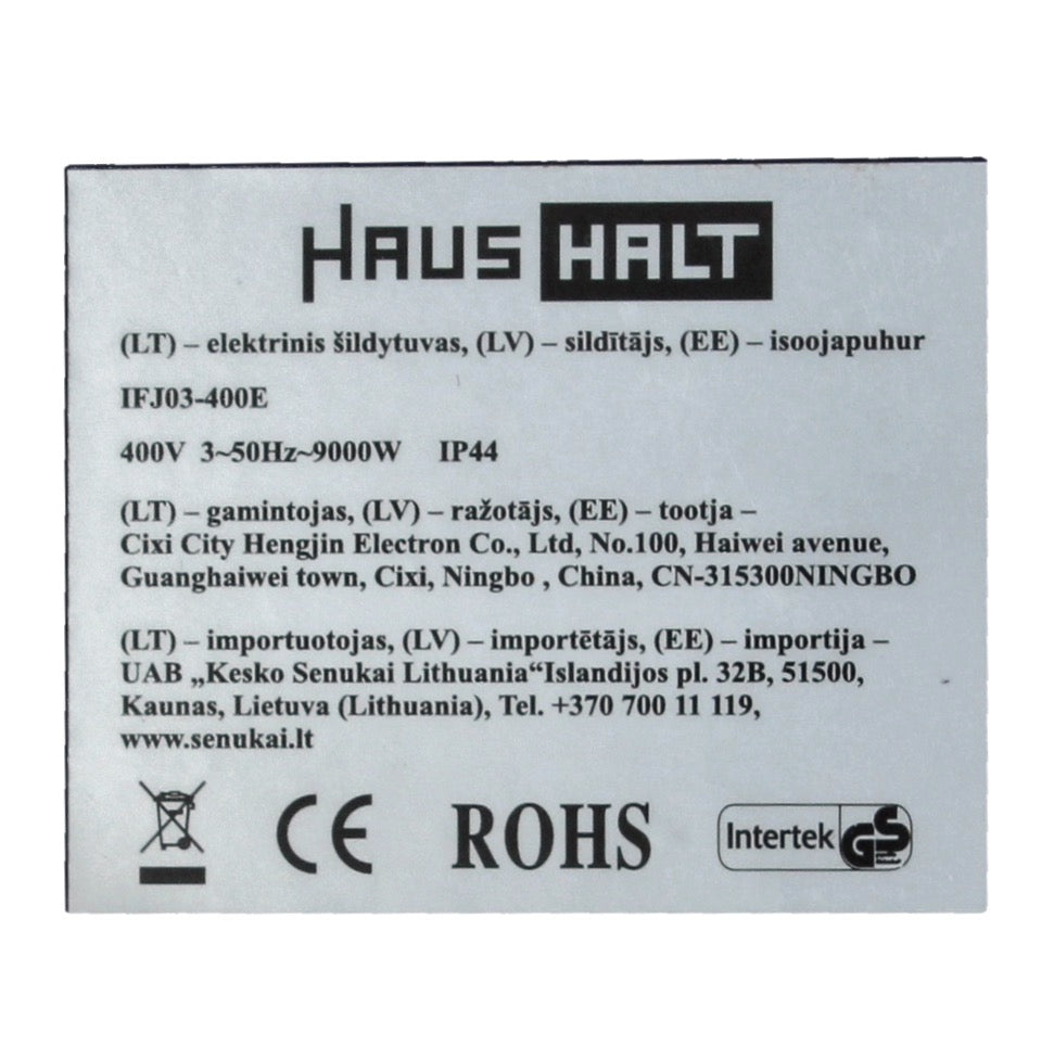 HausHalt IFJ03-400E Elektro Industrie Heizgerät 400 V 9 kW 3 Leistungsstufen 90 m² ( 51331373 ) für Werkstatt, Keller, Baustelle etc. inkl. Überhitzungsschutz