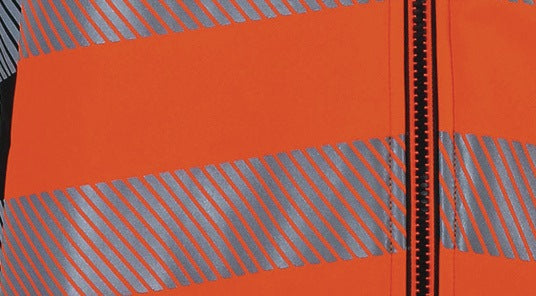 EN ISO 20471 Kl. 2, EN ISO 13688:2013 · 100% Polyester · segmentierte Reflexstreifen · Schulterreflexstreifen · Wassersäule 8000 mm · Atmungsaktivität 1000 mvp auf Anfrage lieferbare Größen: S-5XL