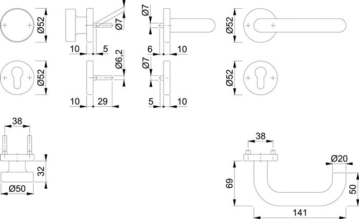 HOPPE fire protection set Paris FS-E58/42H/42HS/138 stainless steel F69 D/K ( 3000203109 )