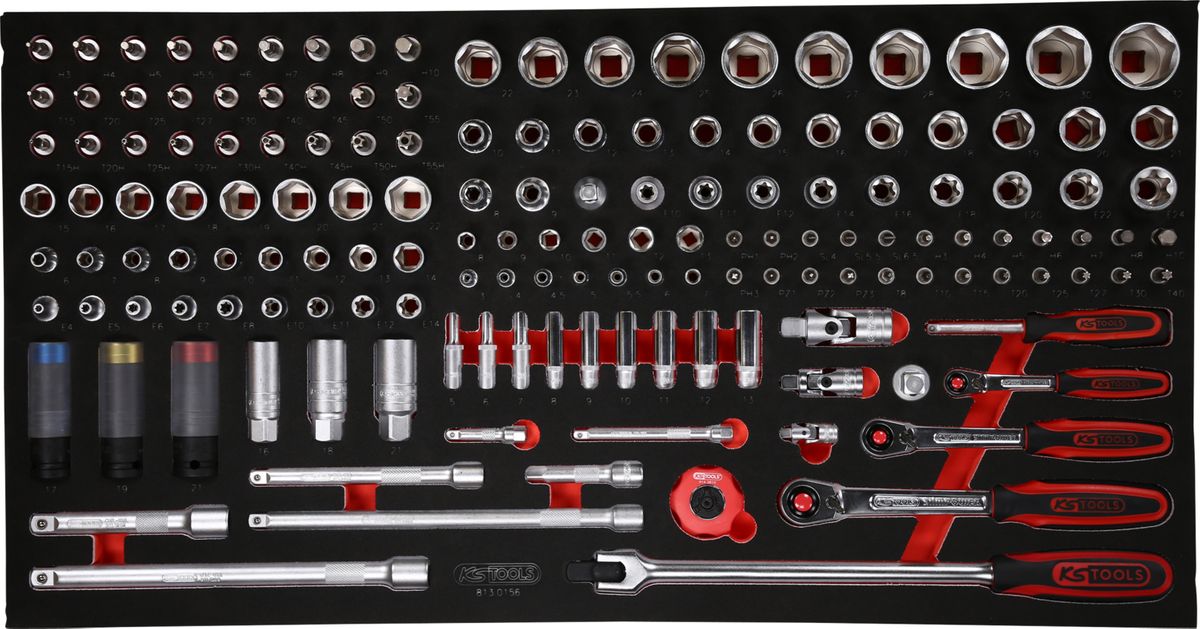 KS TOOLS 1/4'' + 3/8'' + 1/2'' Steckschlüssel-Satz in Schaumstoffeinlage, 156-tlg ( 813.0156 )