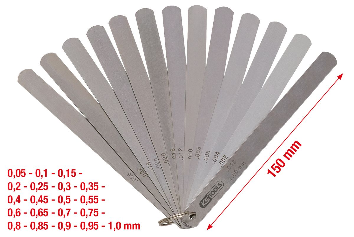 - Messbereich mm: 0,05-0,1-0,15-0,2-0,25-0,3-0,35-0,4-0,45-0,5-0,55-0,6-0,65-0,7-0,75-0,8-0,85-0,9-0,95-1,0 mm