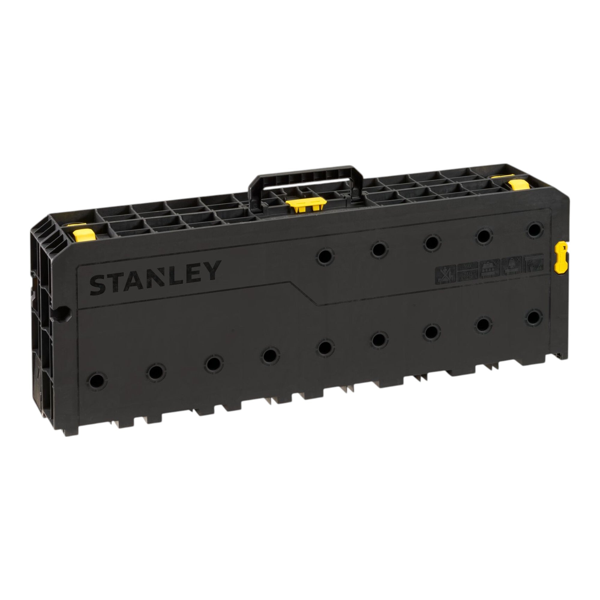 The Stanley STST83492-1 workbench is a mobile and versatile toolbox designed specifically for flexible use on construction sites, in the workshop or on the road. With a spacious main compartment, it offers sufficient space for bulky tools and larger materials, while the robust construction made of durable plastic ensures longevity. Thanks to large 7-inch wheels, the box can be transported effortlessly even on uneven terrain, while the sturdy telescopic handle with a load capacity of up to 50 kg makes it easy to pull or push. The individual units can be securely connected with solid metal clasps and flexibly combined so that you can perfectly organise and take your tools with you depending on your project requirements - a well thought-out solution for anyone looking for mobility and order in one.