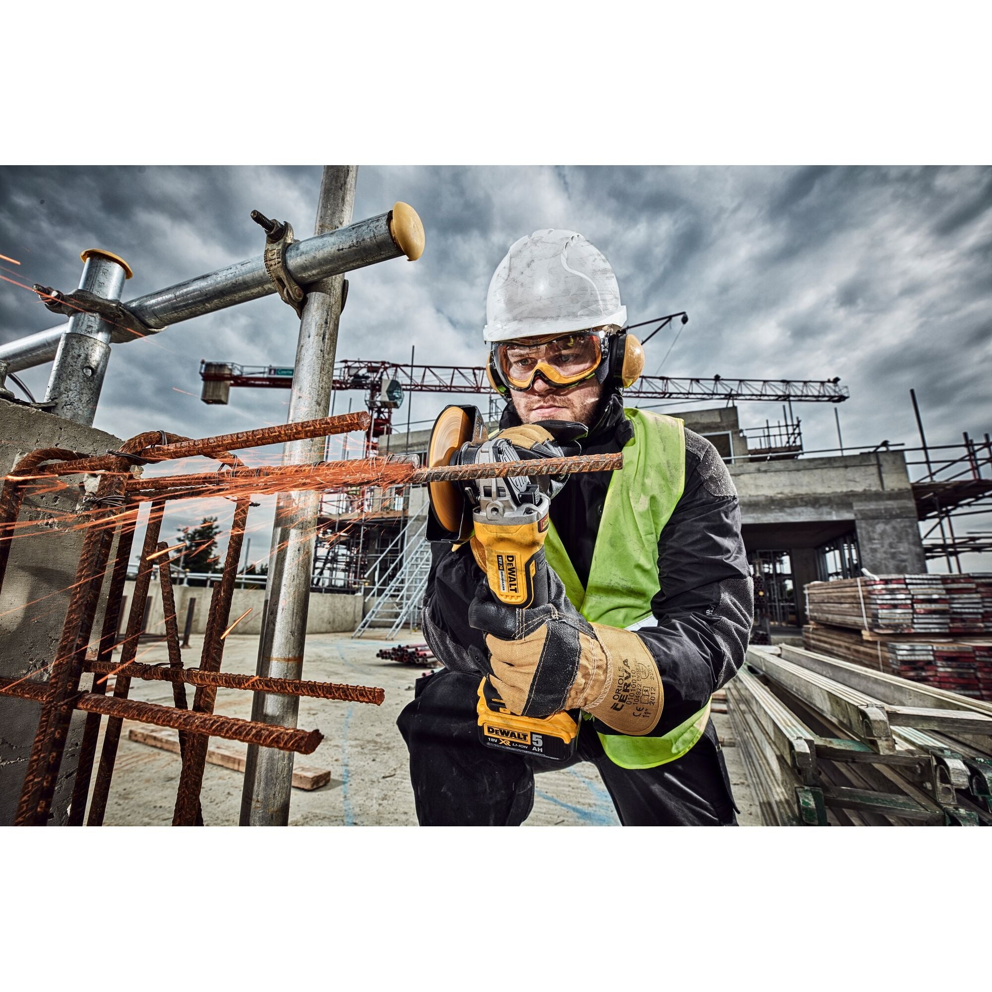 Der DeWalt DCG 406 ist ein 18 Volt Akku betriebener und bürstenloser Winkelschleifer mit 125 mm Durchmesser. Durch den innovativen, bürstenlosen Motor kann eine höhere Leistung bei längerer Laufzeit pro Akkuladung, kompaktere Abmessungen und Einsparungen im Gewicht sowie eine generell höhere Lebensdauer der Maschine erzielt werden. Die mit Epoxyd-Harz gepanzerten Wicklungen schützen den Motor zusätzlich vor abrasiven Staubpartikeln, zugleich sorgt das optimierte Lüftungssystem im Inneren des Schleifers für eine perfekt angepasste Kühlung der Maschine und der Elektronik, was ebenfalls zu einer höheren Lebensdauer beiträgt. Das DeWalt eigene Perform & Protect System stoppt mit der Elektronischen Bremse die Scheibe zuverlässig in Sekundenschnelle (<2 Sekunden) und trägt so zum Schutz des Anwenders bei. Die Elektronische Kupplung schaltet das Gerät bei Blockieren automatisch ab und schützt so ebenfalls Anwender und Maschine zugleich. Beide Schutzsysteme minimieren die Gefahren bei Kickbacks noch effektiver. Die mitgelieferte Schutzhaube lässt sich werkzeuglos mit einer Hand verstellen und trägt zusammen mit dem ebenfalls mitgelieferten Seitengriff zu einem flexiblen und anwendungsgerechten Einsatz der Maschine bei. Eingeschaltet wird die Maschine durch einen Paddel- / Totmannschalter, der den Anwender bei unvorhergesehenen Bewegungen oder abruptem Stillstand der Maschine in Sekundenschnelle schützt, sollte es zu einem Kontrollverlust des Gerätes kommen.