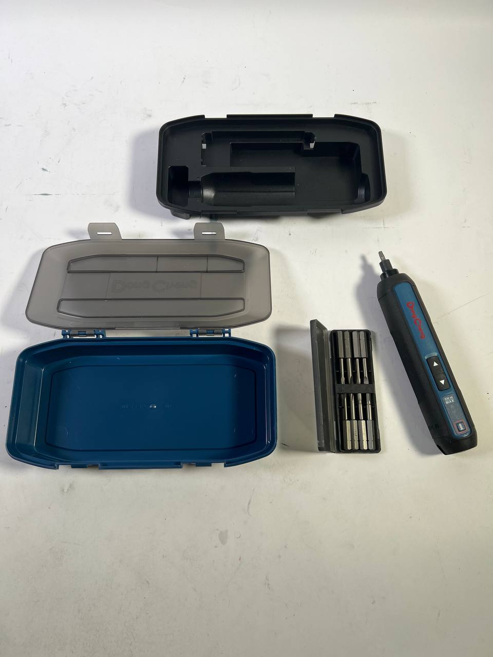DongCheng Mini Akkuschrauber, 4V Akkuschrauber klein, 2000 mAh Lithium-Ionen-Akku, 3 Drehmoment, max. 5Nm, LED-Licht, 8-tlg. - Neuwertig