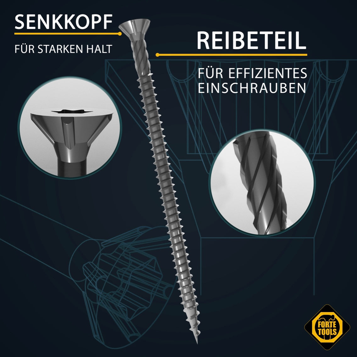 FORTE Tools tornillo universal para madera 6,0 x 50 mm T30 400 piezas (4x 000040113888) galvanizado en plata Torx cabeza avellanada rosca completa