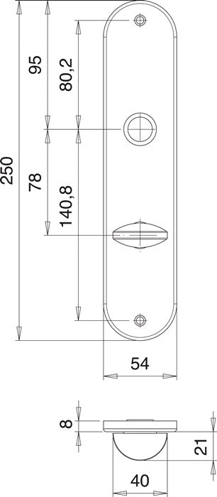 Acier inoxydable - ovale - vissage visible - largeur 54 mm - longueur 250 mm