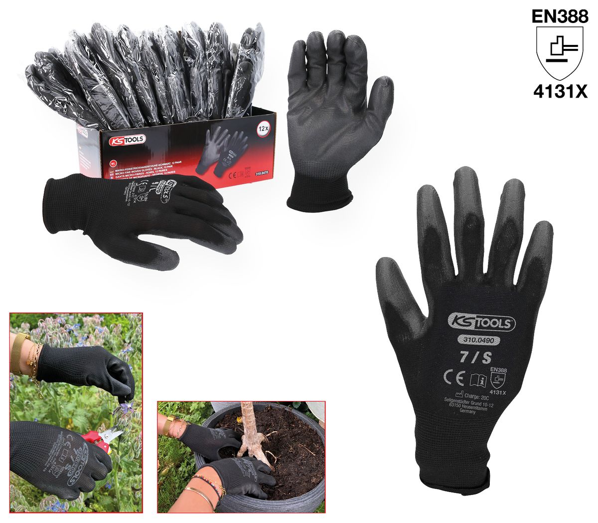 KS TOOLS Gant maille fine MICRO, noirs, 12 paires 7 ( 310.0490 )