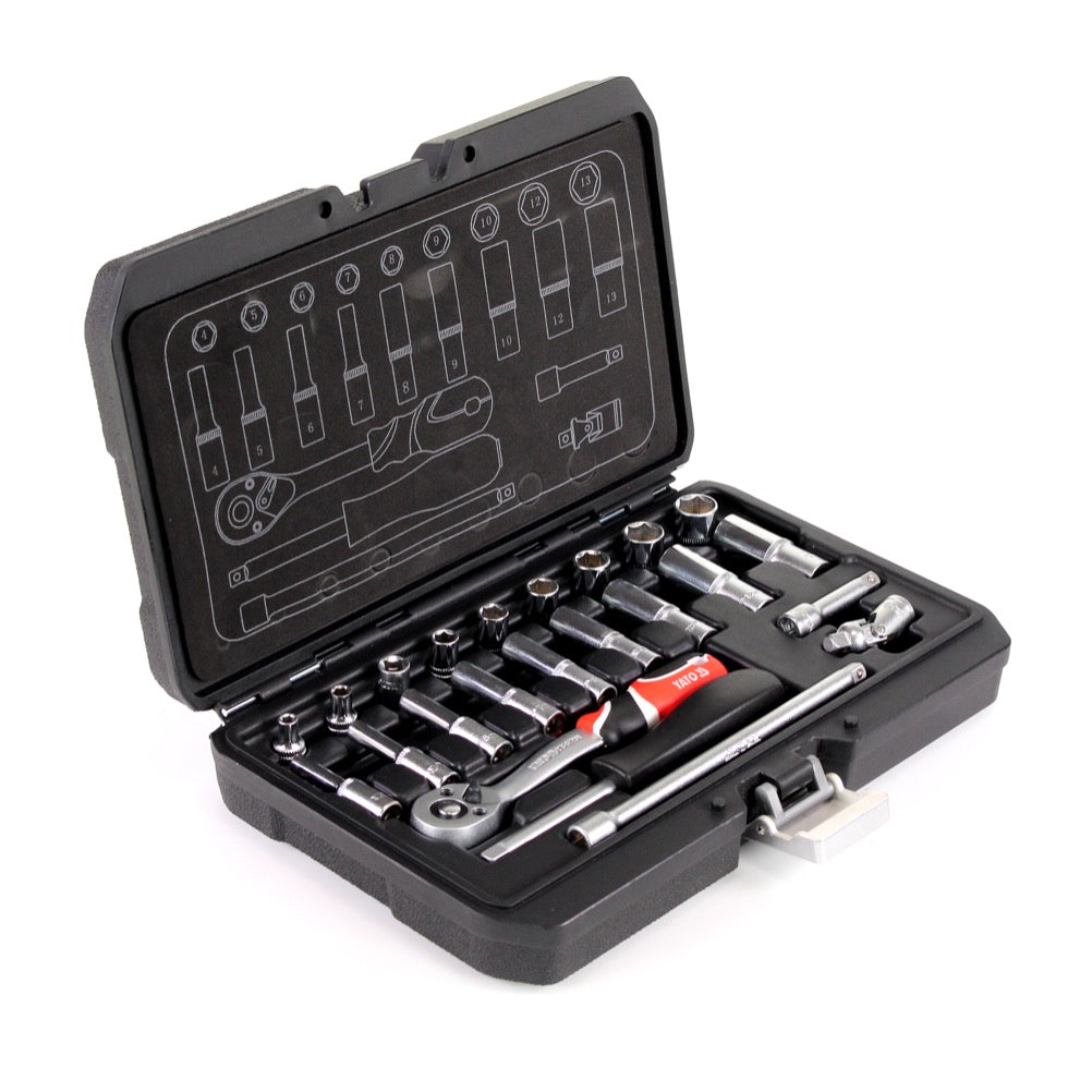 Yato YT-14451 Set de Clés à douille 1/4' contenant Ecrous et Poignée à cliquet - 23 pcs.