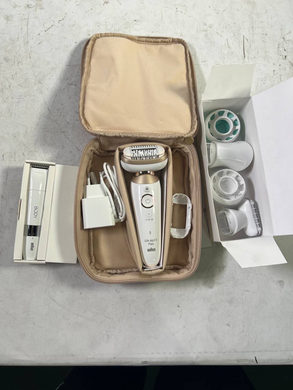 BRAUN Silk-épil 9 Flex 9-100 set di bellezza epilatore da donna / depilatore + spazzola per la pulizia del viso FaceSpa + 9 accessori + borsa bianco / oro