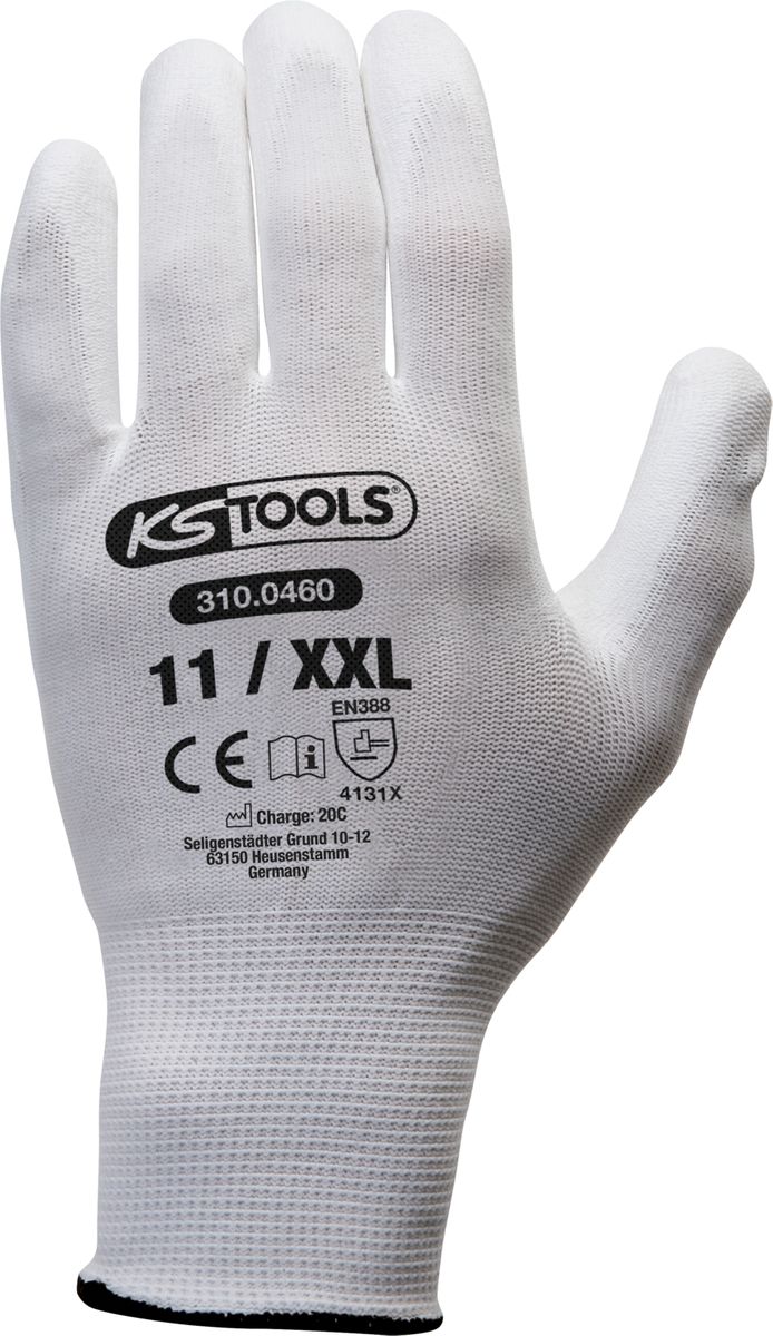 KS TOOLS Guanti in microtessuto bianco,11,12paia ( 310.0460 )