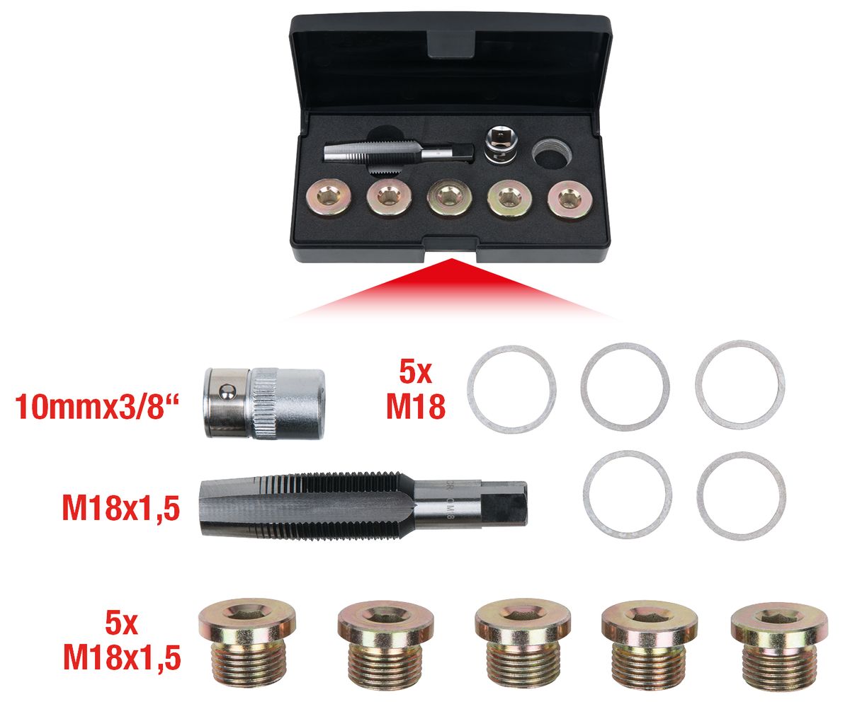 KS TOOLS Serie di utensili per viti di scarico olio, 12 pz M18x1,5 ( 150.4935 )