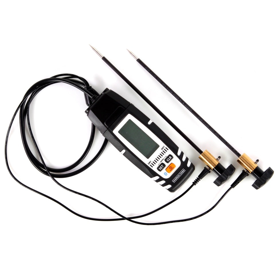Bei diesem Gerät aus dem Hause Laserliner handelt es sich um ein professionelles Feuchtemessgerät zur Messung von Holz- und Baufeuchte. Es hat zudem eine integrierte Bluetooth-Schnittstelle zurÜbertragung der Messdaten. Verschiedene auswählbare Holz- und Baumaterialien ermöglichen materialspezifische Messungen und erhöhen die Messgenauigkeit. Die 12 farbigen LEDs (grün=trocken, gelb=feucht, rot=nass) geben sofort Auskunft über den Feuchte- bzw. Trocknungsgrad des gemessenen Materials. Im Index-Modus kann durch Vergleichsmessungen zu- bzw. abnehmende Feuchtigkeit anhand einer neutralen Skala ermittelt werden. Zudem ist eine unisolierte runde Einsteck-Tiefenelektrode zur Feuchtemessung in Bau- und Dämmstoffen über Fugen oder Fugenkreuz vorhanden. 2. eine Einsteck-Tiefenelektrode rund (isoliert) zur Feuchtemessung in verdeckt liegenden Bauteilebenen bei der Bestimmung der Feuchteverteilung von mehrschaligen Wand- oder Deckenaufbauten. 3. Einsteck-Tiefenelektrode Bürste zur Feuchtemessung in einem homogenen Baustoff ohne Verwendung einer Kontaktmasse. Der Kontakt erfolgt über den Bürstenkopf. 4. Einsteck-Tiefenelektrode flach (isoliert) zur gezielten Feuchtemessung in verdeckt liegenden Bauteilebenen bei der Bestimmung der Feuchteverteilung von mehrschaligen Wand- oder Deckenaufbauten. Elektroden können durch den Randstreifen oder am Wanddeckenübergang eingeführt werden können.