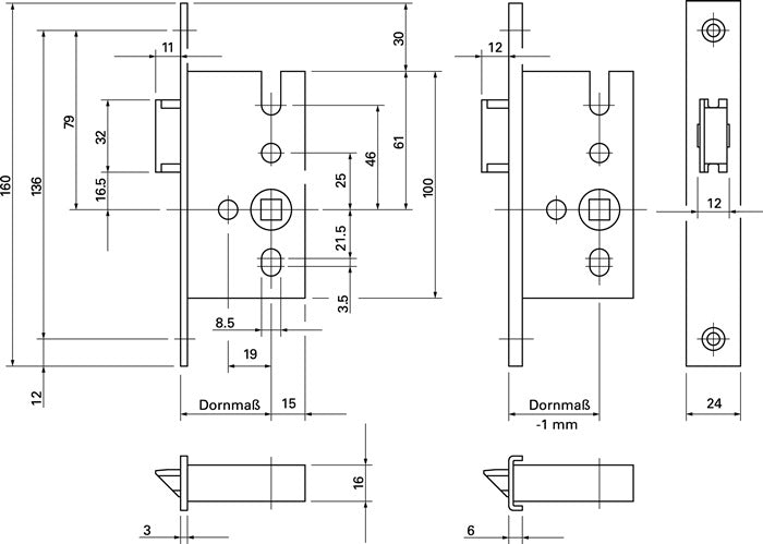 BKS Einsteck-Fallenschloss 1307 20/55/8 mm DIN links / rechts ( 3000250800 )
