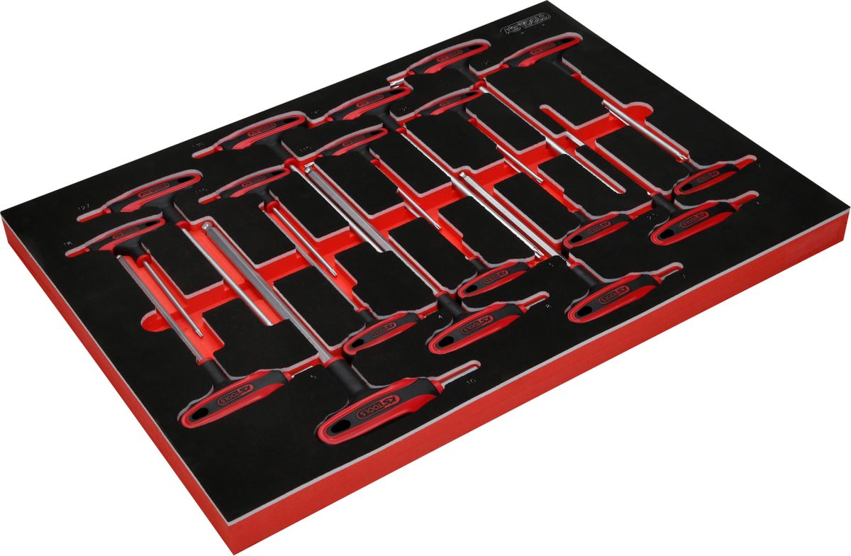 KS TOOLS T-Griff-Winkelstiftschlüssel-Satz in Schaumstoffeinlage, 18-tlg ( 811.1018 )