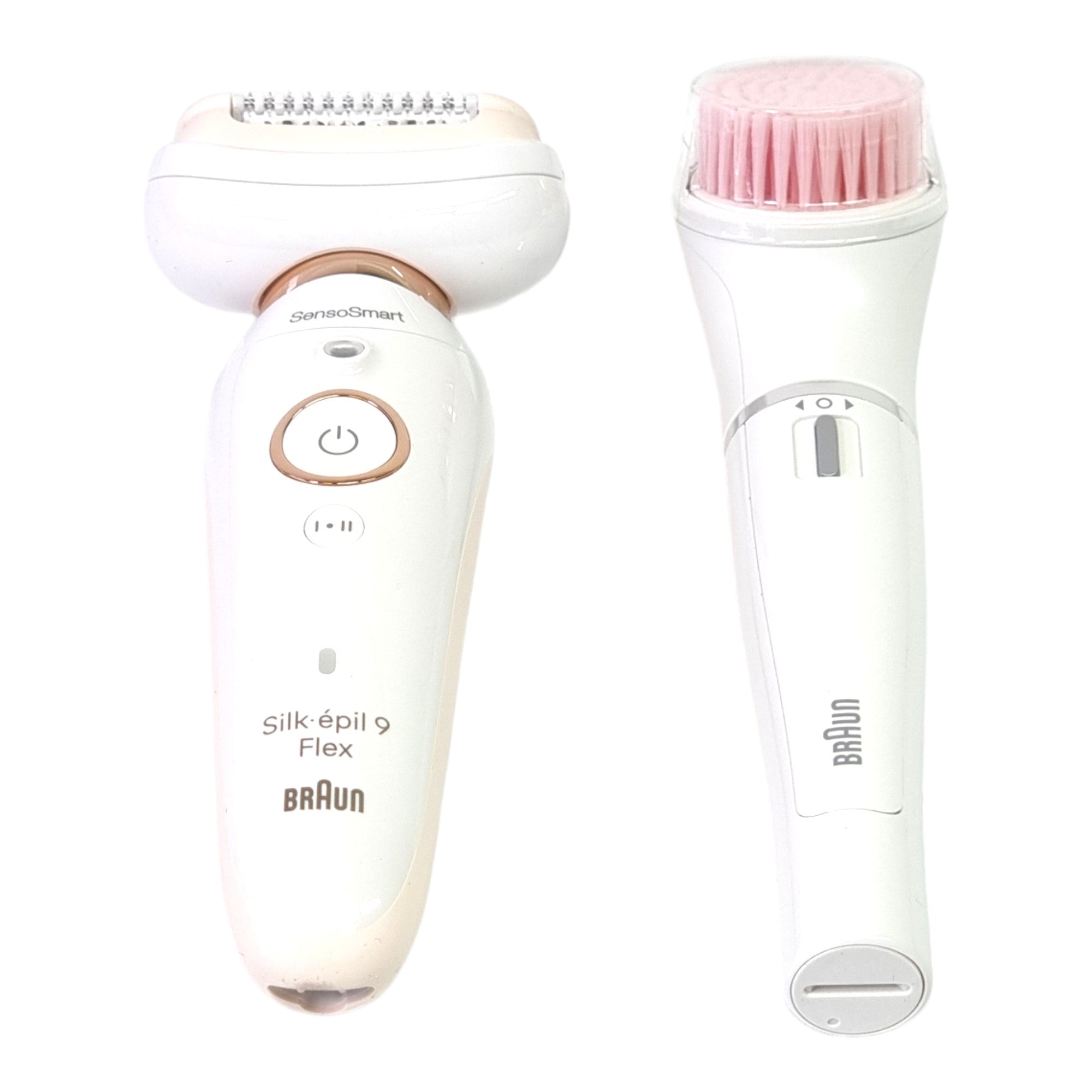 BRAUN Silk-épil 9 Flex 9-100 zestaw kosmetyczny depilator damski / depilator + szczoteczka do oczyszczania twarzy FaceSpa + 9 nasadek + torba biały / złoty