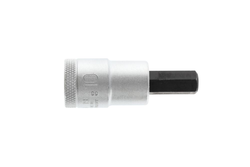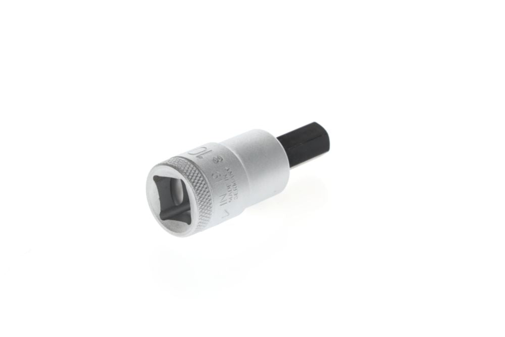 Napęd kwadratowy 12,5 mm (1/2″) - do śrub z gniazdem sześciokątnym - wkładka ze stali wanadowej - ostrze ze specjalnej stali manganowo-fosforanowej - radełkowana z rowkiem na kulkę - DIN 7422