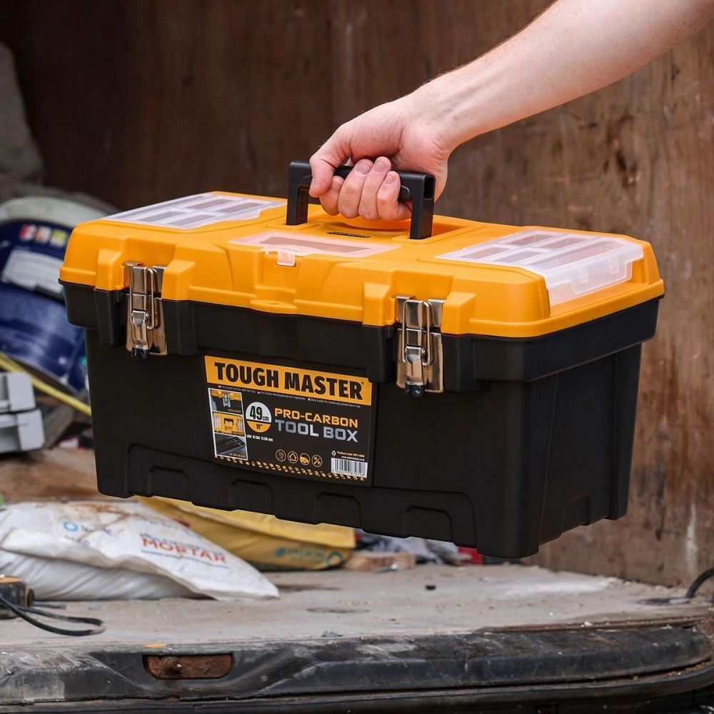 TOUGH MASTER Werkzeugkiste aus Kunststoff, mittelgroß, 26 x 49 x 24.6 cm, mit Ablage, herausnehmbaren Fächern, Innenfach, Veriegelung ( UPT-4006 )