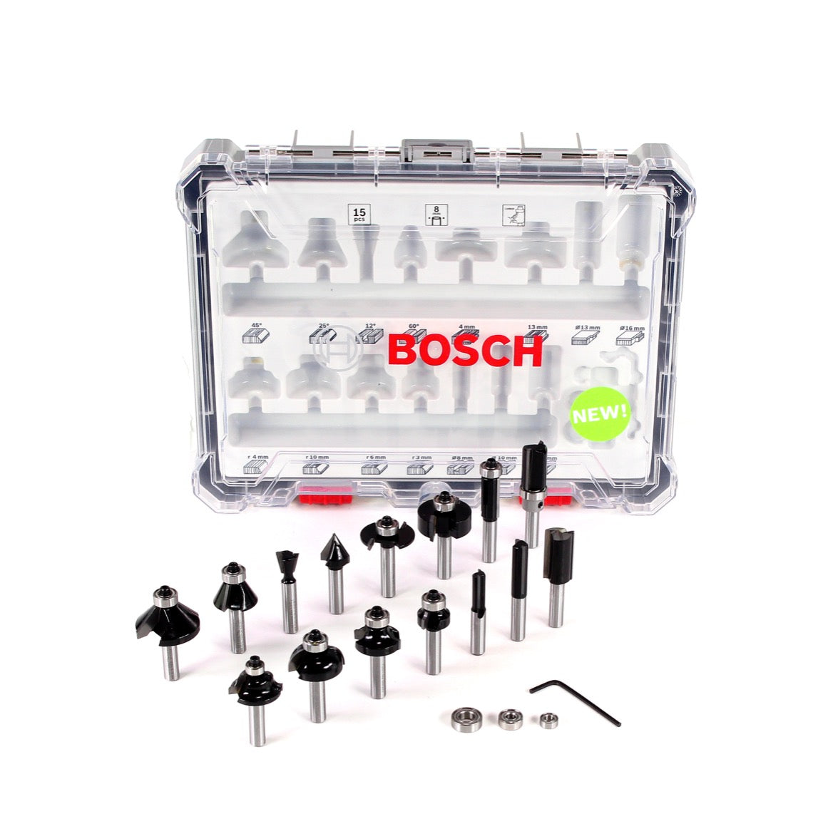 - 1x Bosch 18 teiliges Fräser Set