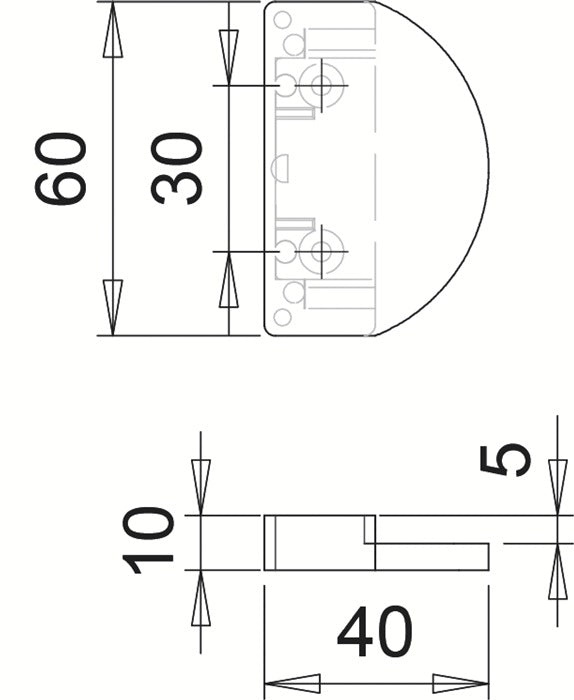 60 mm x 40 mm · verdeckt verschraubt · Bohrabstand 30 mm