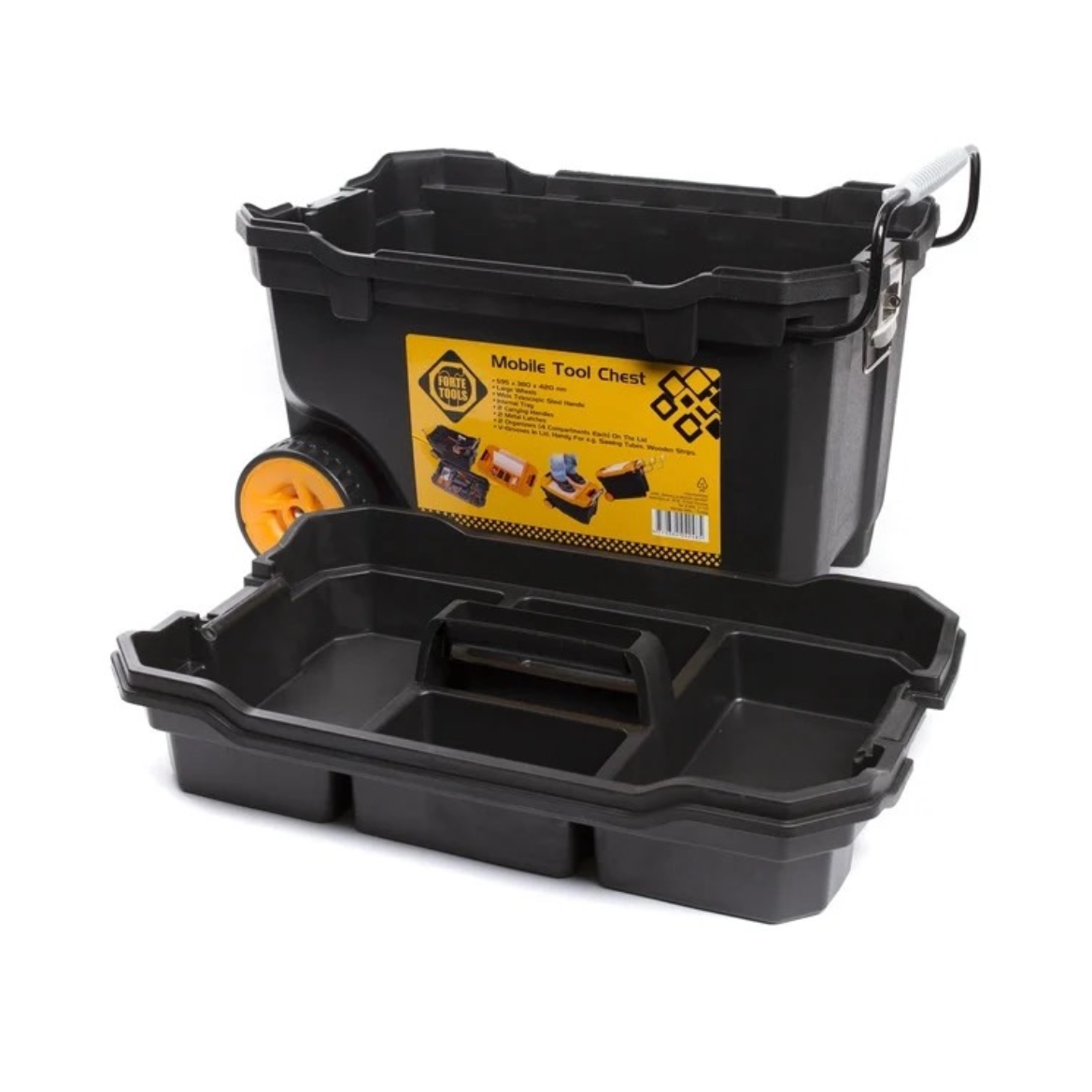 Forte Tools Montagebox mobil, Werkzeugkasten mit Rollen groß in 59,5 x 42 x 38 cm robust mit Metallverschluss und herausnehmbarem Organizer ( 000051144574 )