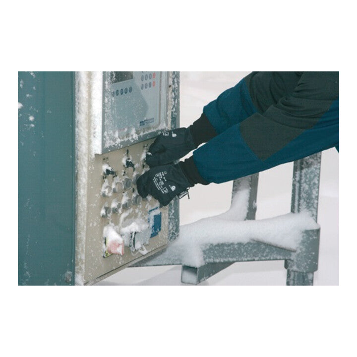 nach EN 511 · EN 388 · Kat. II · Kälteschutz mit Slip-Stop-Profil bis -50 °C · Nylon mit Thinsulate-Futter und PVC-Profilierung · Kälte kann durch den Strickbund kaum in den Handschuh eindringen · gute Feinfühligkeit und Passform, auch bei Nässe · atmungsaktiv · extrem gute mechanische Belastbarkeit · sicherer Griff bei nassen Teilen · feuchtigkeitsabweisend · Lebensmittelunbedenklichkeit gem. EU 1935/2004 · Anwendung: Lebensmittelbe- und -verarbeitung, Arbeiten in kalter Umgebung, Garten- und Landwirtschaft, Montagearbeiten an Außenanlagen, Winterdienst von Kommunen, Bauwirtschaft auf Anfrage auch in Gr. 7 lieferbar