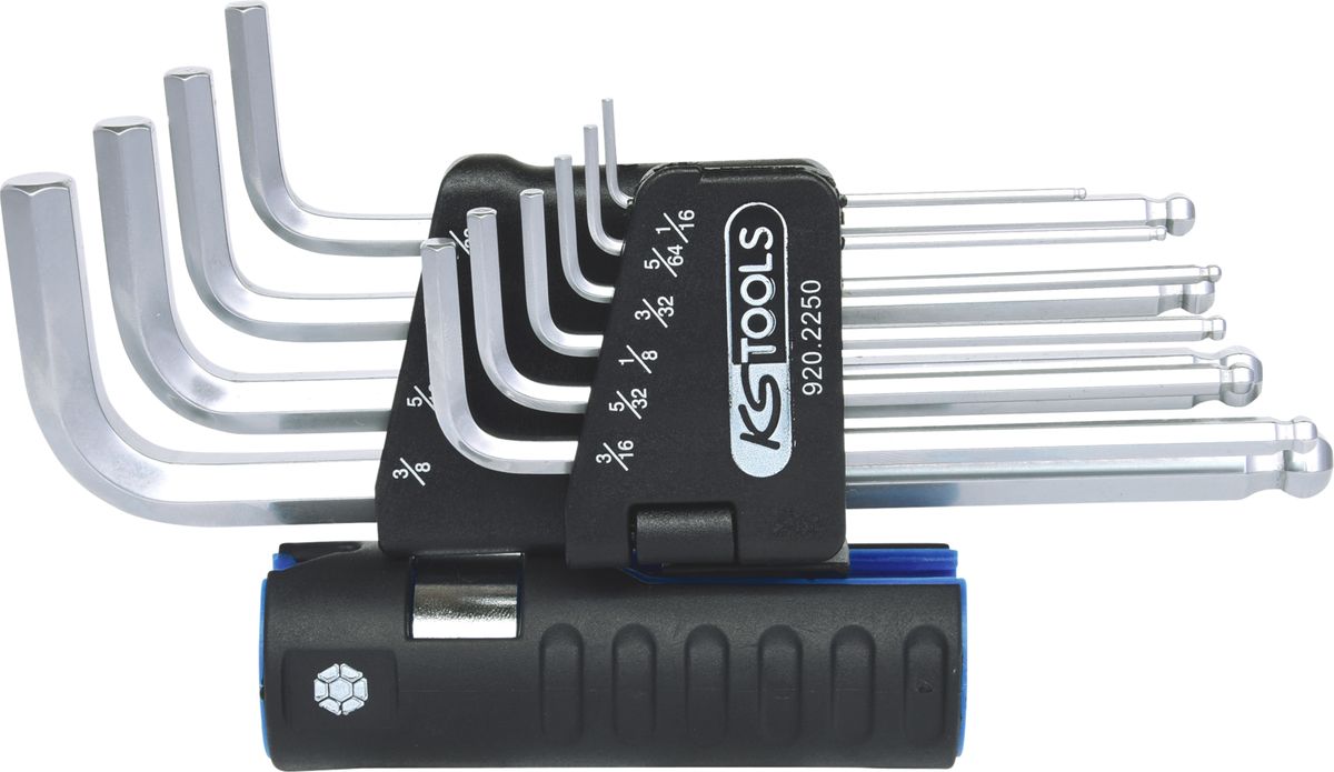 KS TOOLS 3 in 1 Innen6kant-Winkelstiftschlüssel-Satz,10-tlg lang, Kugelkopf, Zoll ( 920.2250 )