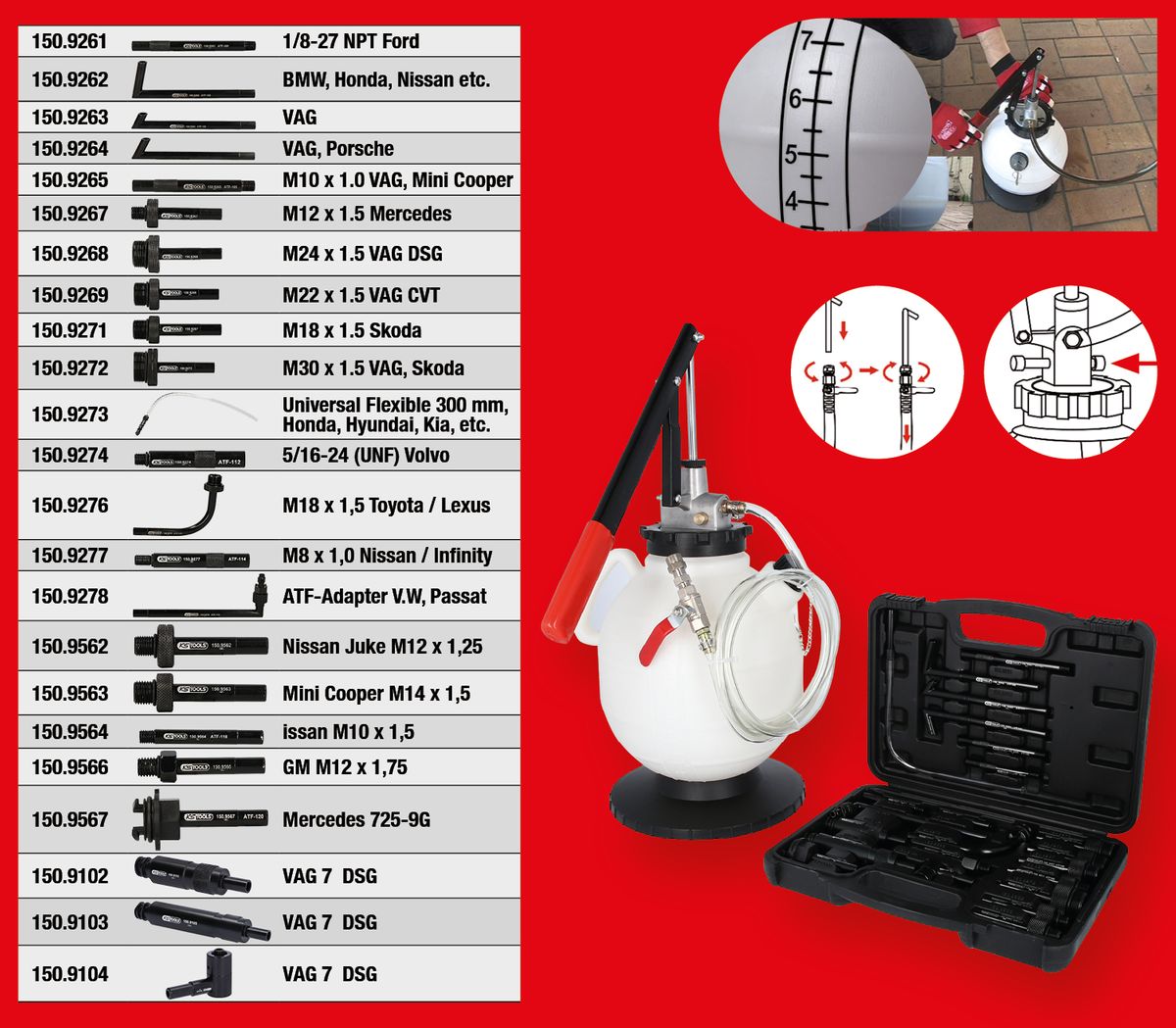 Universal Getriebeöl-Füllsystem-Satz mit 23-tlg Adaptersatz · Universal Getriebeöl-Füllsystem-Satz inkl. 23-tlg Adaptersatz