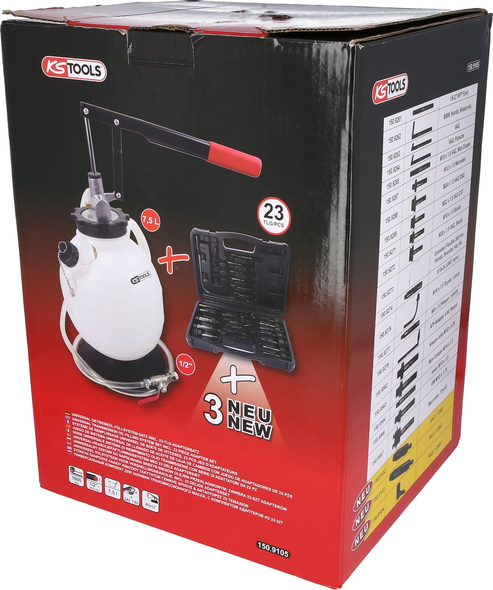 KS TOOLS Universal Getriebeöl-Füllsystem-Satz mit 23-tlg Adaptersatz ( 150.9105 )