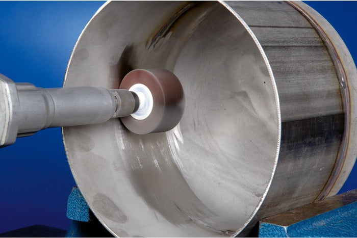 - Anwendungsempfehlung: Für beste Leistung bei einer empfohlenen Schnittgeschwindigkeit von 15–20 m/s einsetzen. Hierbei wird ein idealer Kompromiss zwischen Abtragsleistung, Oberflächengüte, Temperaturbelastung des Werkstückes und Werkzeugverschleiß erreicht. Die Erhöhung der Schnittgeschwindigkeit bringt eine geringfügig feinere Oberfläche mit sich. Durch die Erhöhung des Anpressdrucks wird die Oberfläche geringfügig gröber. Je weicher der zu bearbeitende Werkstoff, umso gröber die Oberfläche (bei Verwendung , Eine Steigerung der Abtragsleistung sollte durch eine gröbere Körnung und nicht durch Erhöhung des Anpressdrucks erreicht werden, um unnötigen Werkzeugverschleiß und eine Temperaturbelastung des Werkstückes zu verhindern. Die Reduzierung des Anpressdrucks und der Umfangsgeschwindigkeit sowie die Zugabe von Schleiföl reduzieren den Werkzeugverschleiß und die Temperaturbelastung des Werkstückes. Für den Werkstoff geeignetes Schleiföl verwenden, um die Standzeit und Schleifleistung der Werkzeuge deutlich zu erhöhen.