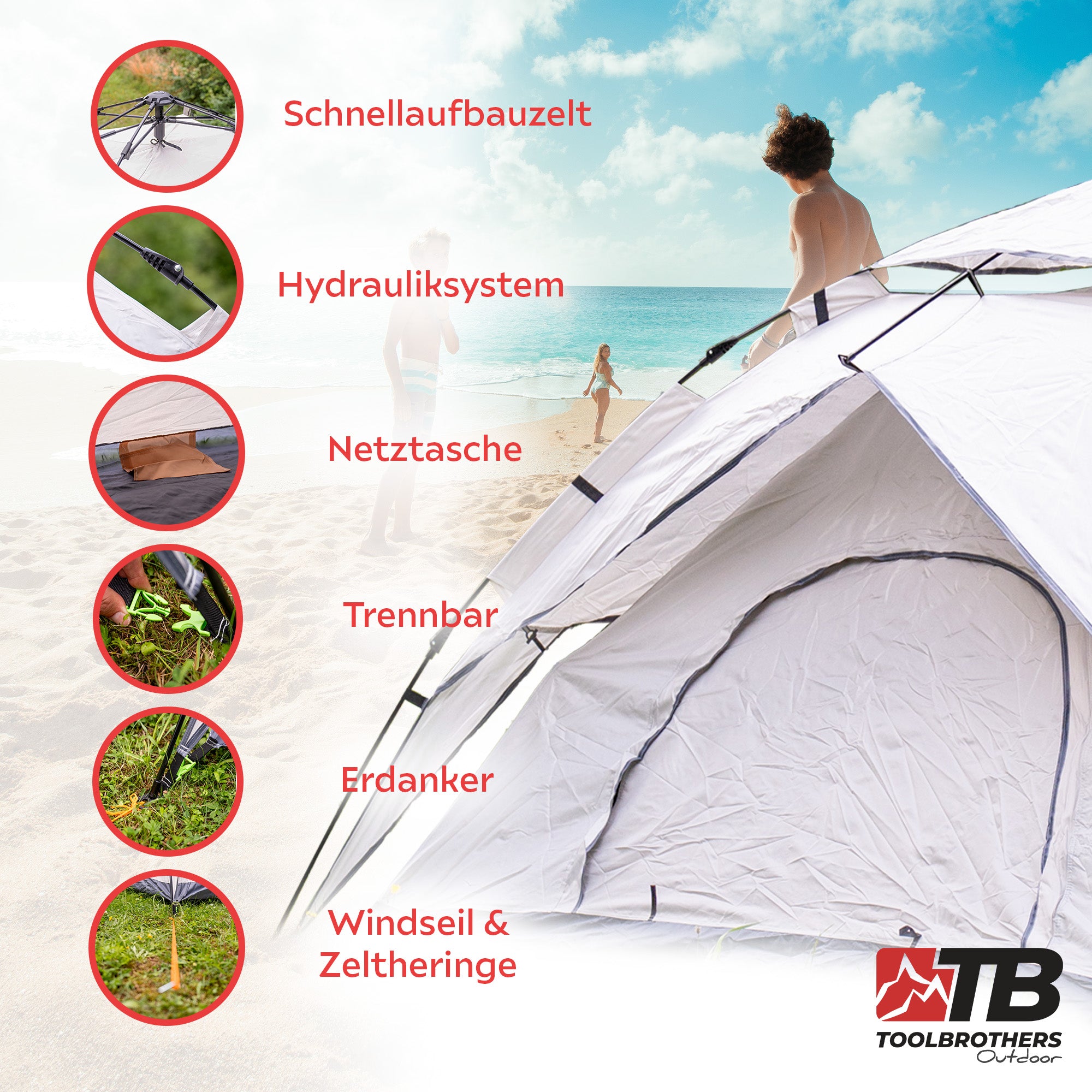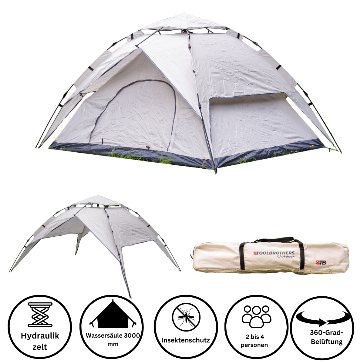 Toolbrothers Outdoor Camping Zelt für 2-4 Personen Kuppelzelt Hydraulikzelt Pop-Up zelt Wasserdicht, 2000-3000 mm Wassersäule