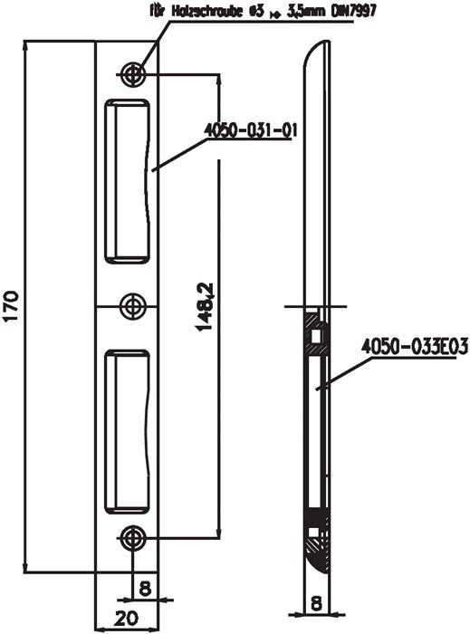SSF Winkelschließblech ( 3000251048 ) Aluminium silber Winkel Tiefe 8 mm DIN links / rechts