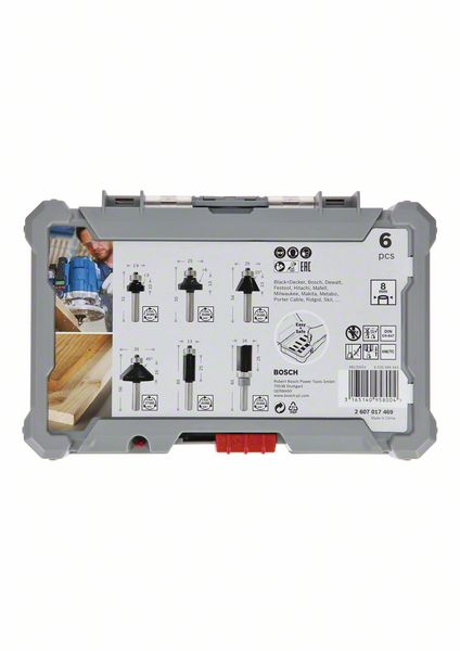 Bosch Rand- und Kantenfräser Set 8 mm 6 tlg. + Koffer ( 2607017469 ) für Oberfräsen mit Rundschaft