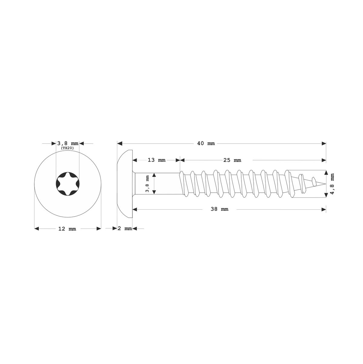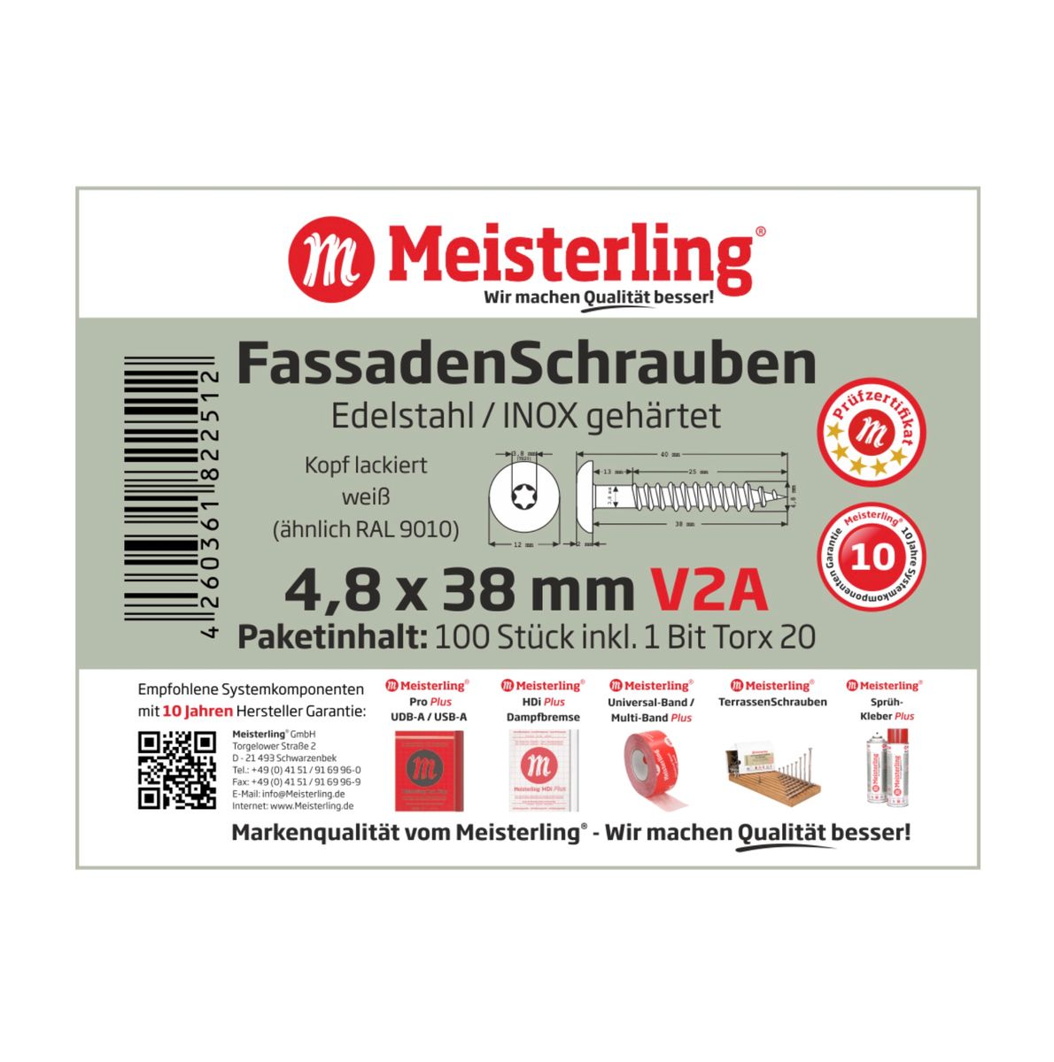 Meisterling Fassadenschrauben 4,8x38 mm 100 Stück ( 010020000201 ) 12 mm Flachkopf weiß mit Torx Teilgewinde V2A Edelstahl