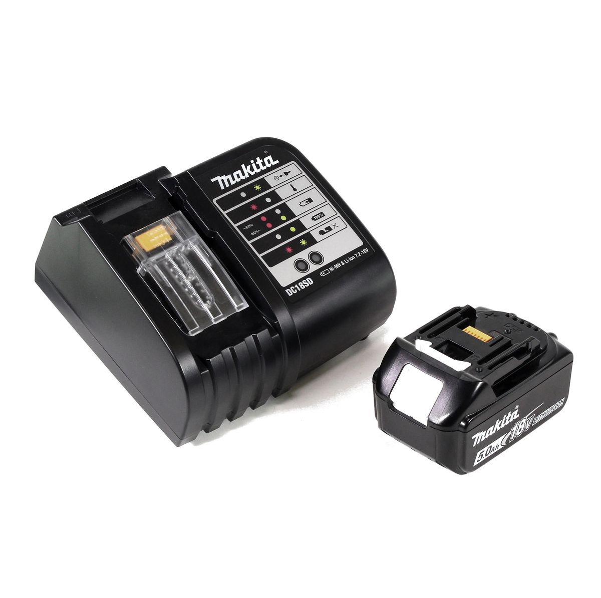 Makita DHP 482 STK W Perceuse-Visseuse à percussion sans fil 18V 62Nm + 1x Batterie 5,0Ah + Chargeur + 100x pièces Ensemble Foret + Coffret de transport