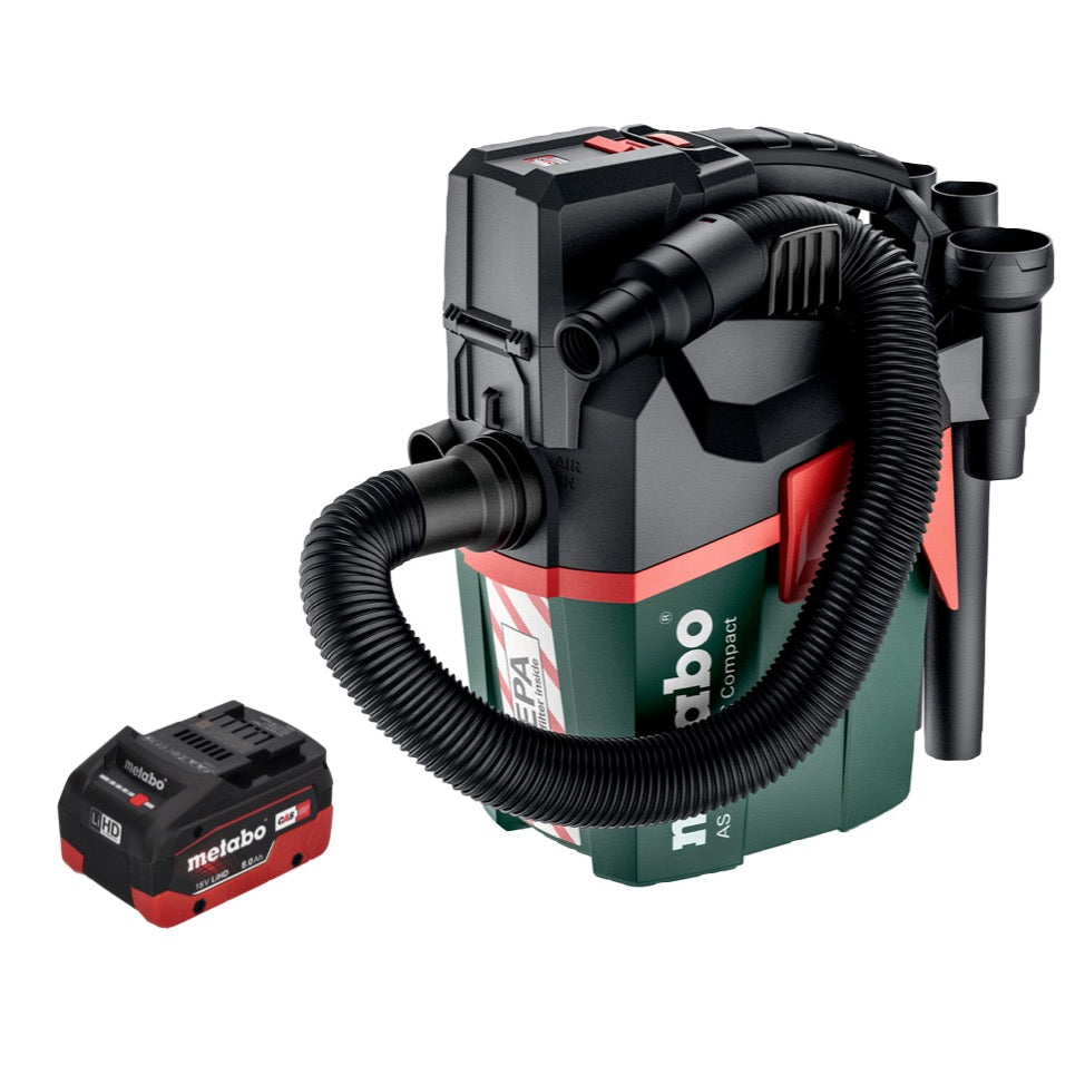 Metabo AS 18 HEPA PC Compact Akku Sauger 18 V 6 l Nass und Trocken Sauger mit Blasfunktion + 1x Akku 8,0 Ah - ohne Ladegerät