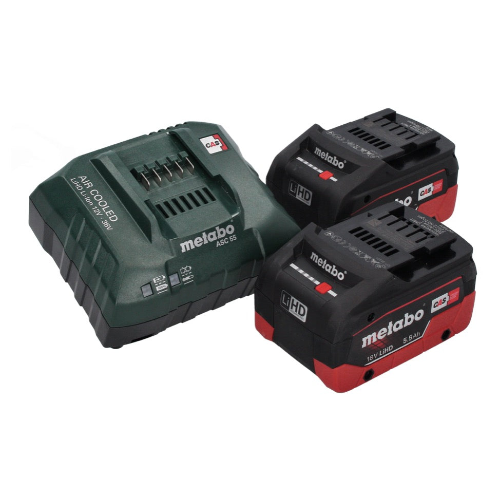 Metabo AS 18 HEPA PC Compact Akku Sauger 18 V 6 l Nass und Trocken Sauger mit Blasfunktion + 2x Akku 5,5 Ah + Ladegerät