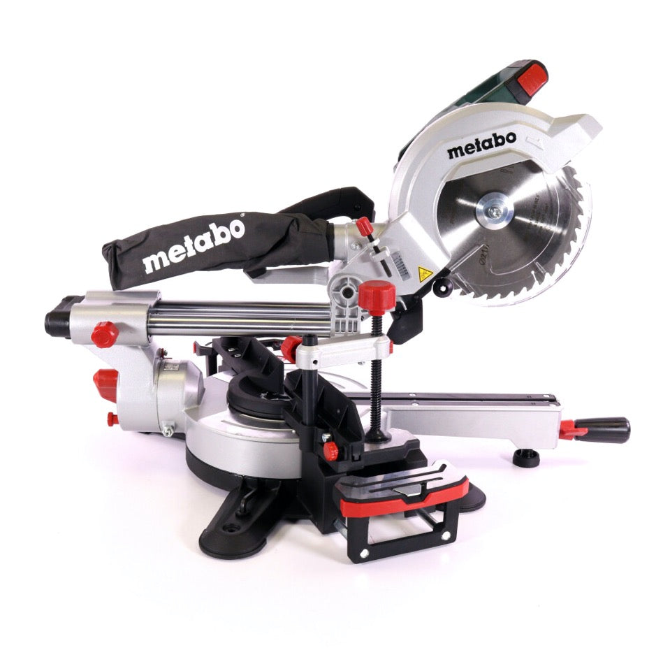 Die Metabo KGS 18 LTX 216 Akku Kappsäge ist Dank der hohen Schnittleistung der ideale Begleiter in jeder Werkstatt oder auch für Montagearbeiten. Dank des verhältnismäßig geringen Gewichts, sowie der ergonomischen Griffe ist die Kappsäge sogar für den einhändigen Transport geeignet. Die verbaute Motorbremse sorgt innerhalb von 3 Sekunden für einen Schnellstopp des Sägeblattes. Ein verbauter Sanftanlauf sorgt für ein ruhiges und elegantes Anlaufen des Sägeblattes. Das aus Aluminiumdruckguss bestehende Gehäuse trotzt härtesten Ansprüchen. Für die notwendige Sicht auf das Werkstück und die Erhaltung der Gesundheit des Anwenders, sorgt die integrierte Staubabsaugung. Des Weiteren besitzt die KGS 18 LTX 216 einen Schnittlinien Laser und eine LED Beleuchtung mit Abschaltautomatik. Darüber hinaus besitzt die Kappsäge eine stufenlos ausziehbare Tischverbreiterungen, diese ist abnehmbar zum Unterlegen langer Paneele oder Leisten. Auch hohe seitlich verschiebbare Anschläge sorgen für die notwendige Sicherheit. Sämtliche Bedienelemente und Skalen, sind gut erreichbar und gut ablesbar. Metabo verbindet eine lange Tradition zu Werkzeugen aller Art, darüberhinaus ist Metabo Mitglied im CAS Konzern und besitzt somit eine breite Pallette an kompatiblen Geräten und Akkus anderer Hersteller.