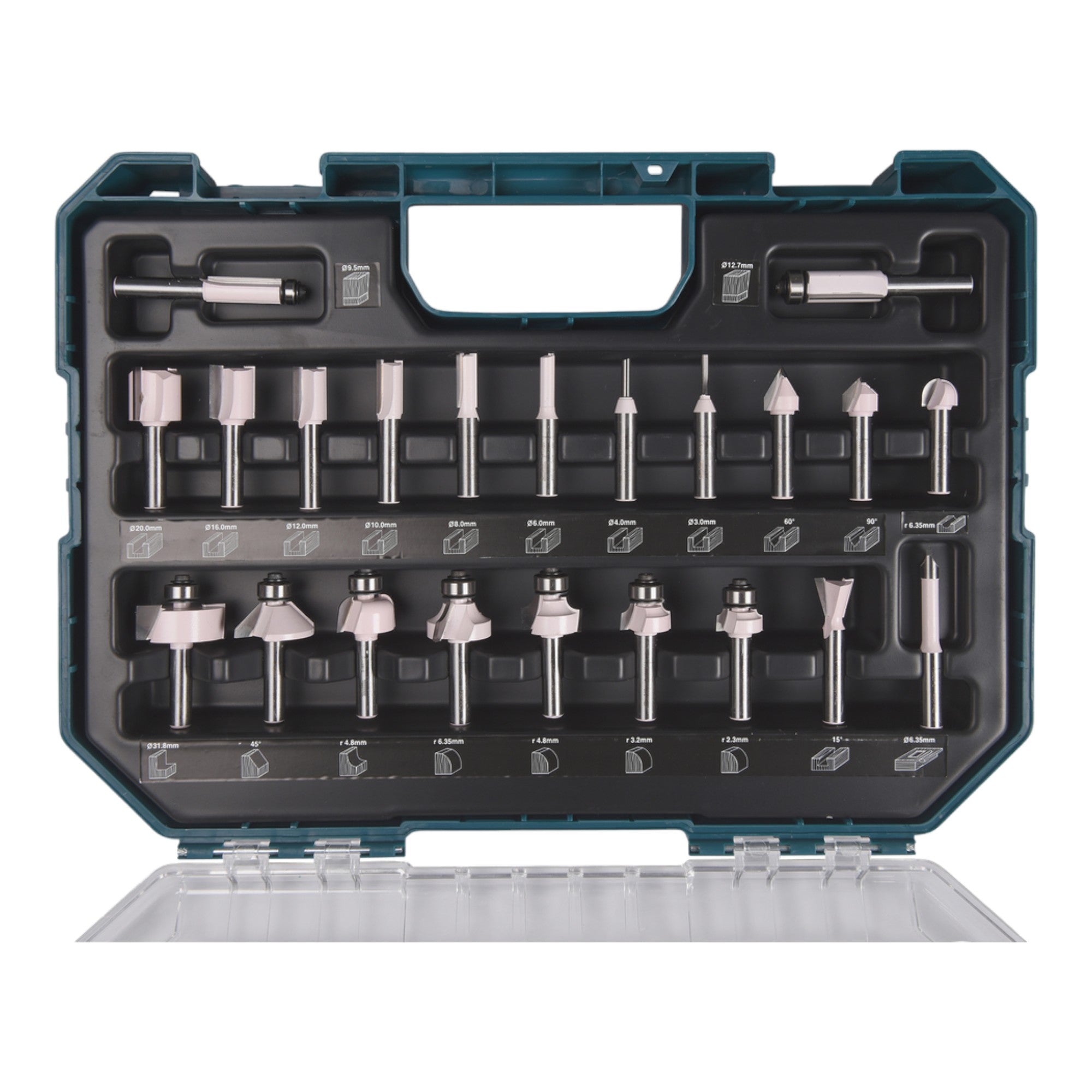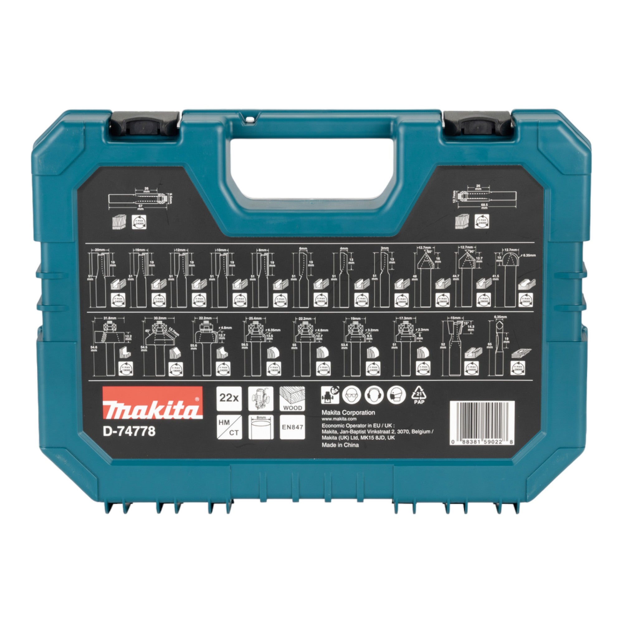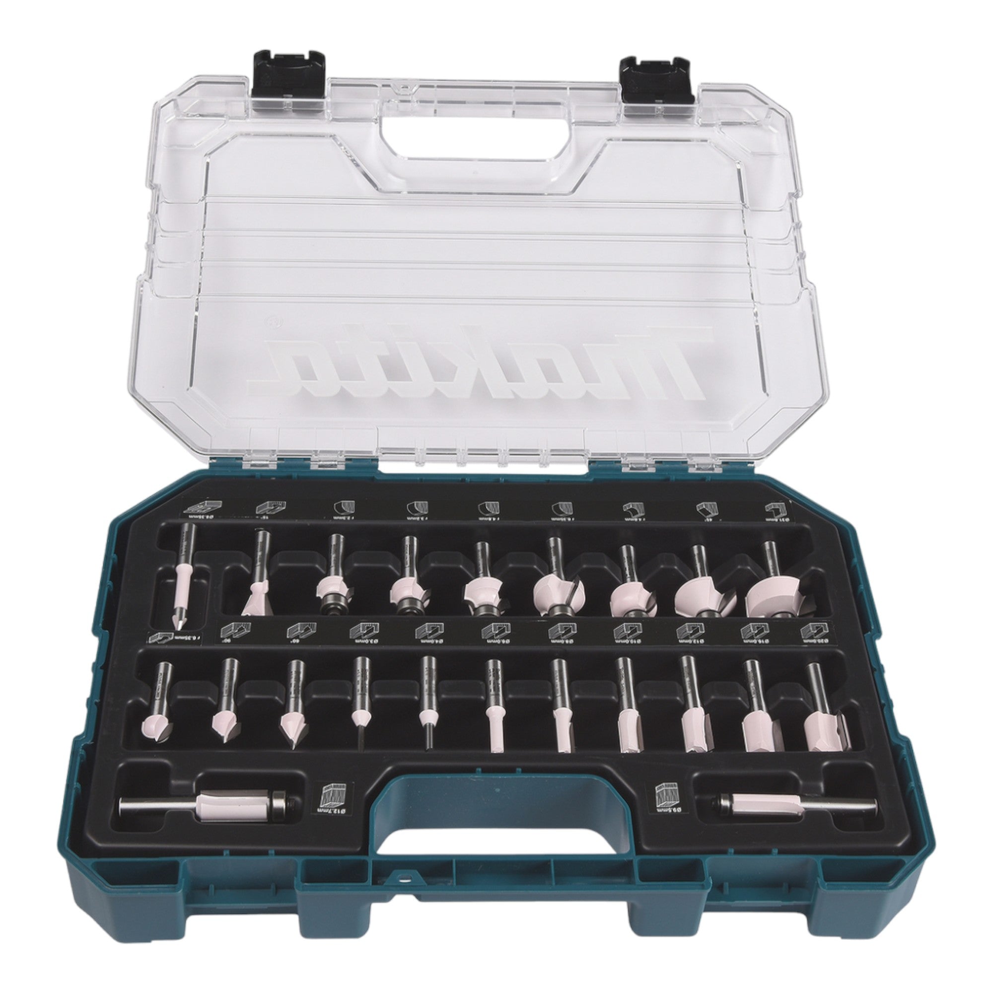 Set di frese Makita ( D-74778 ) 22 pezzi con gambo da 8 mm per la costruzione di mobili, falegnameria, carpenteria e fai da te