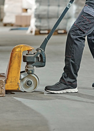 zgodnie z normą EN ISO 20345 - S1P ESD SRA - szerokość buta: 10,5 - cholewka wykonana z materiału tekstylnego - ergonomicznie ukształtowany, wyściełany brzeg cholewki wykonany z materiału syntetycznego - przyszyty, wyściełany język wykonany z materiału tekstylnego - zapięcie na elastyczne tekstylne oczka - wyjmowana, anatomiczna wkładka - podnosek z włókna szklanego i odporna na przebicie podeszwa środkowa z tkaniny - antystatyczna, odporna na oleje i kwasy, antypoślizgowa i super lekka podeszwa zewnętrzna EVA/guma - sportowa podeszwa zewnętrzna - całkowicie wolna od metalu - obszar zastosowania: magazyn, spedycja, przemysł itp. dostępne również w rozmiarach od 36 do 48 na zamówienie