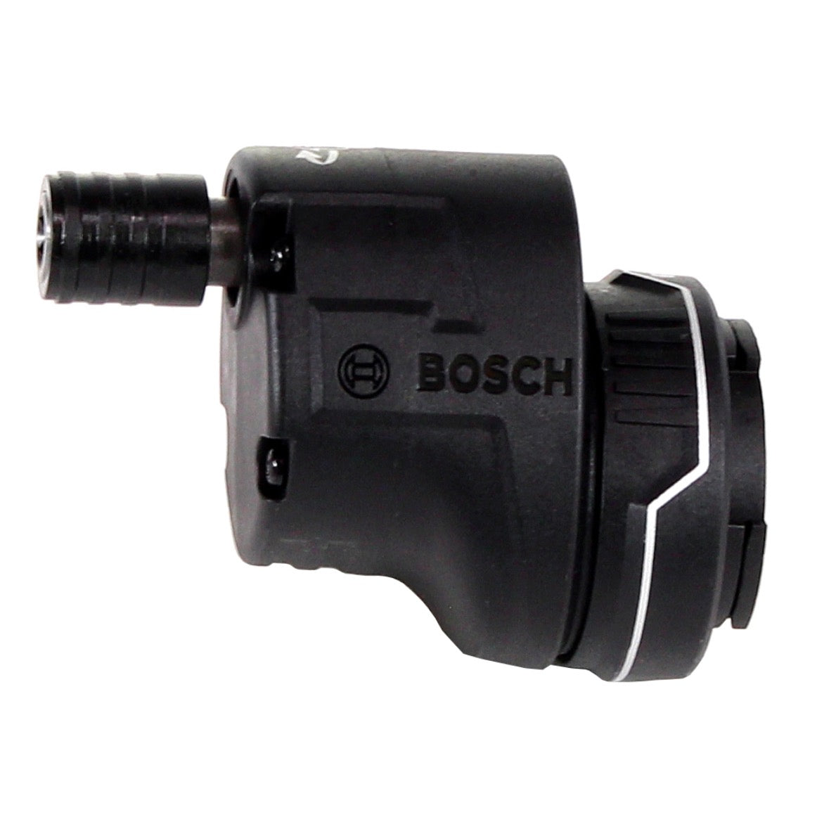 Mit einem Eckmaß von nur 12 mm ermöglicht Ihnen der Exzenteraufsatz GFA 12-E von Bosch nahe an Kanten und Wänden zu arbeiten. Dieser Aufsatz ist z.B. kompatibel mit der GSR 12V-15 FC. Die „Ein-Klick“-Halterung gewährleistet eine sofortige feste Verbindung mit dem Werkzeug. Zudem ist es einfach bedienbar: Der GFA 12 E kann in 16 verschiedenen Positionen (360°) arretiert werden, ohne den Aufsatz vom Akkuschrauber abnehmen zu müssen. Der verriegelbare 1/4"-Universalbithalter arretiert alle gängigen Bohr- und Schrauberbits.