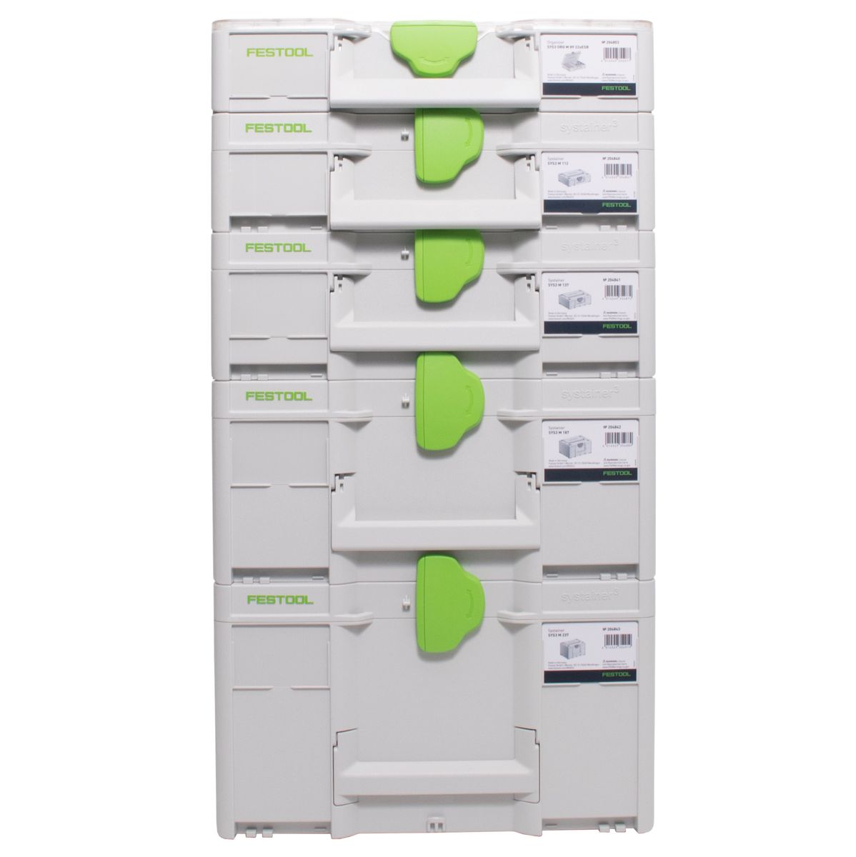 Festool Systainer Set SYS3 M 237 ( 204843 ) + SYS3 M 112 ( 204840 ) + SYS3 M 137 ( 204841 ) + SYS3 M 187 ( 204842 ) + SYS3 ORG M 89 Organizer ( 204853 ) koppelbar