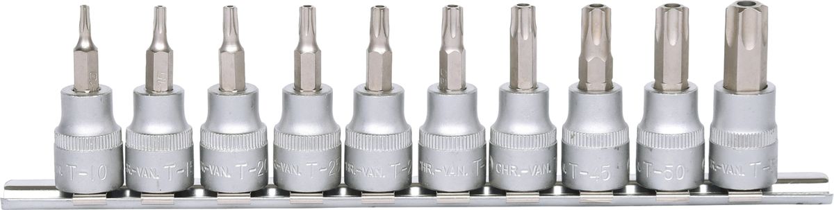 3/8" Bit-Stecknuss-Satz, 10-tlg, TB10-TB55 mit Stirnlochbohrung · Bit-Stecknuss-Satz für Torx-Schrauben mit Stirnlochbohrung