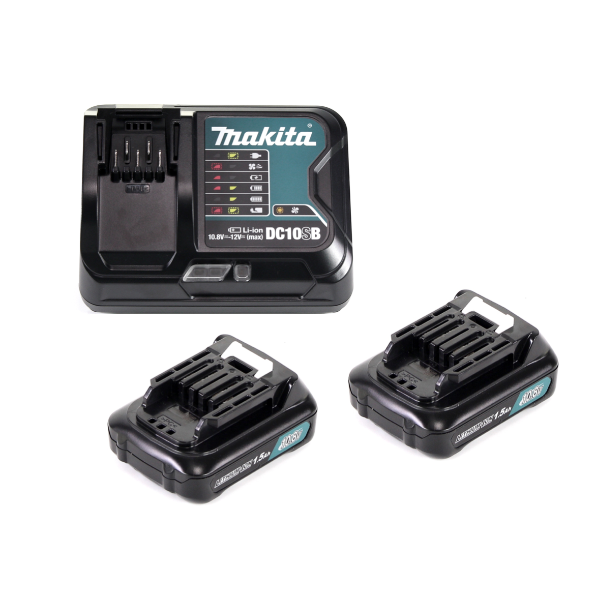 Makita UR 100 DSYE Akku Rasentrimmer 10,8V + 2x Akku 1,5Ah + Lader + 1x Fadenkopf und Zubehör